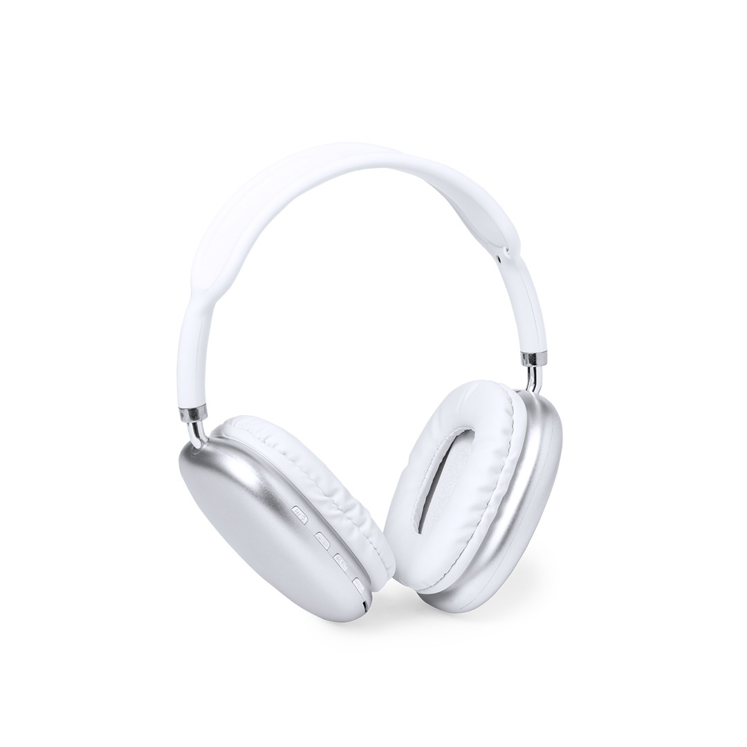 Originales auriculares de diadema con conexión Bluetooth 5.0, de diseño vanguardista y almohadillas cuadradas, en combinación de colores blanco y plateado. Panel de control integrado en el auricular, función manos libres y ranura para tarjetas microSD. Entrada de línea mediante conexión Jack de 3,5mm, incluido cable de 1m. Recargables mediante cable USB (incluido de 30 cm) y con batería de 150 mAh. Presentado en una caja individual de diseño kraft, con papel protector. Conexión Bluetooth. Conexión Jack 3,5 mm. Batería 150 mAh
