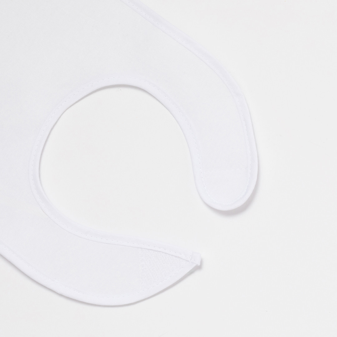 Práctico babero infantil confeccionado en algodón, con cierre de velcro para un mejor ajuste de color blanco. Cierre Velcro