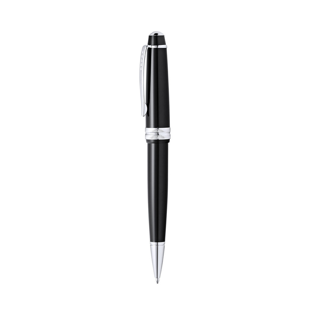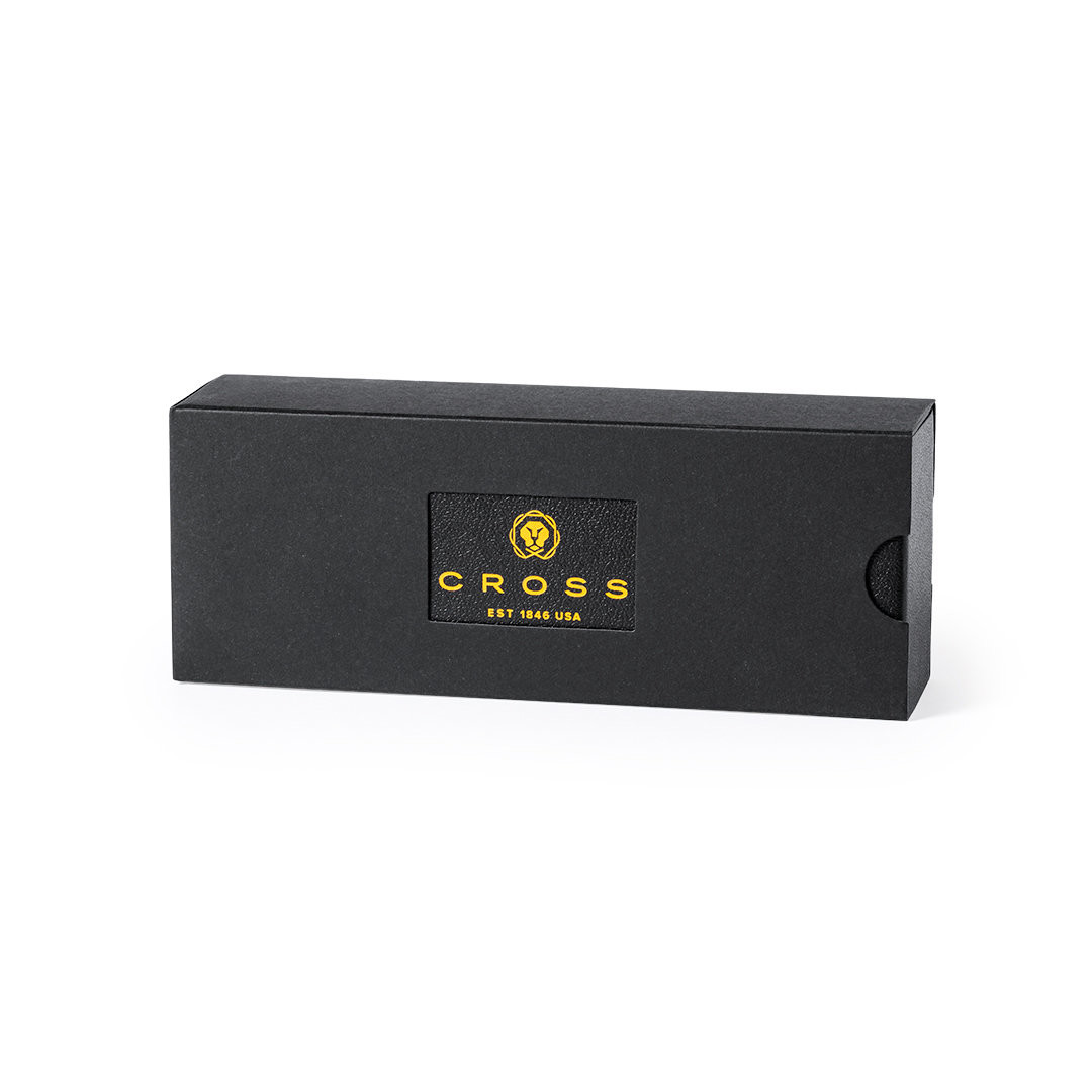 Bolígrafo de Cross modelo Bailey Light, que combina una resina de alto brillo con acabados metálicos de cromo pulido. De cartucho jumbo y en tinta negra. Presentado en elegante estuche individual de color negro con logotipo de la marca, e interior en suave antelina a juego. Tinta Negra