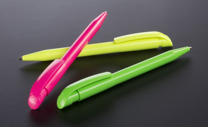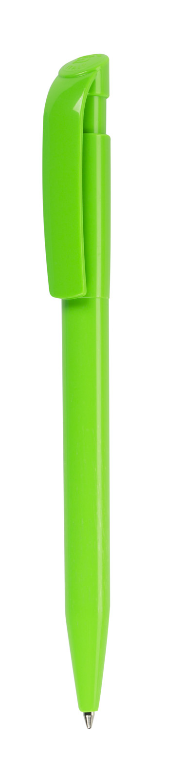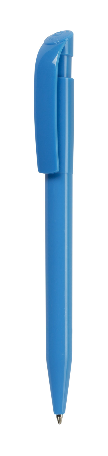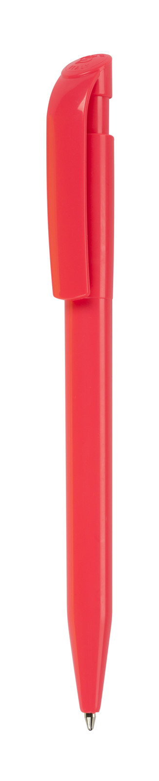 Clásico bolígrafo con mecanismo de pulsador, de atrevido diseño y cuerpo de diferentes colores a elegir, sólidos, en suave acabado. Con cómoda empuñadura. Tinta azul.