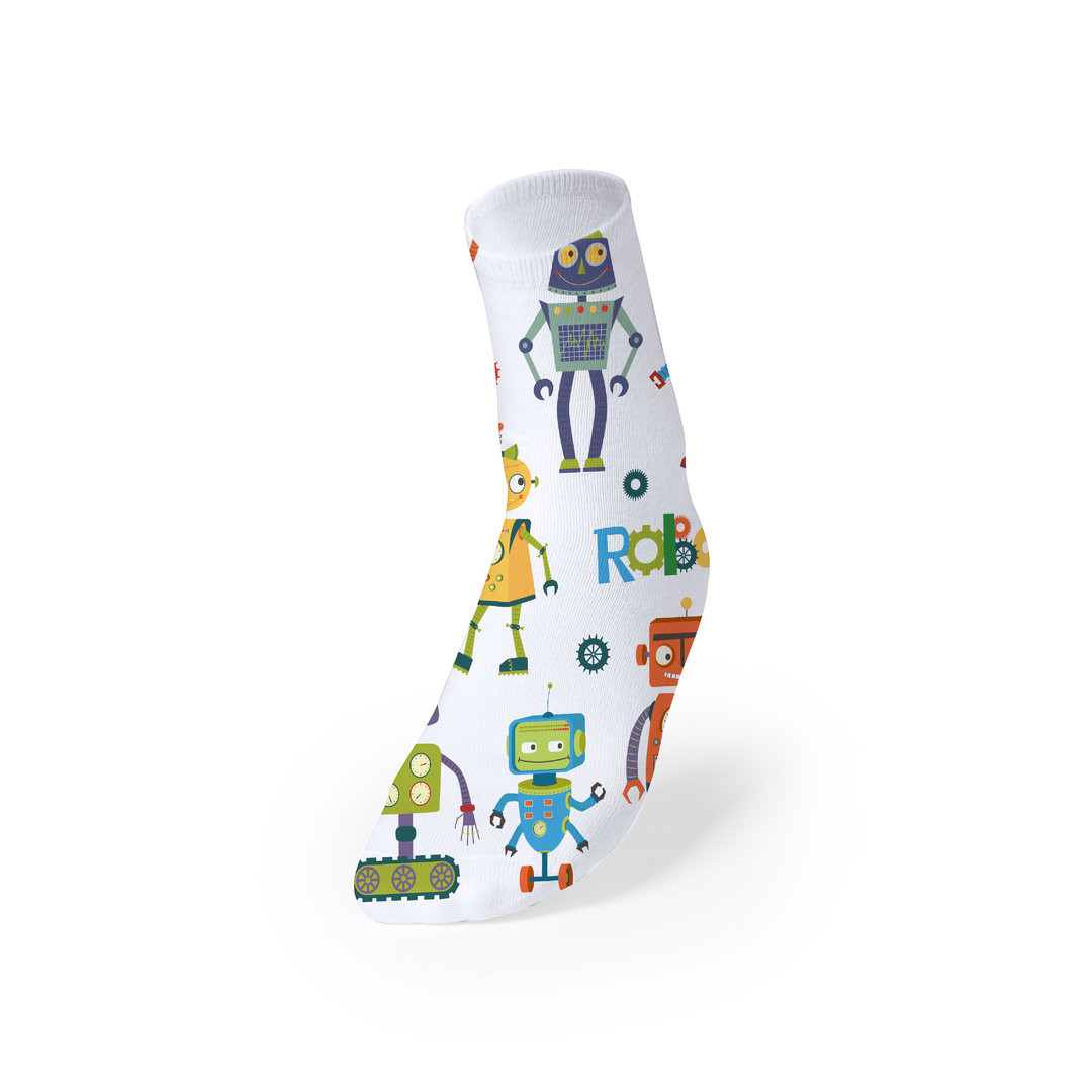 Par de calcetines fabricados en poliéster blanco y especialmente diseñados para marcaje en sublimación. En talla S-M. Talla S-M