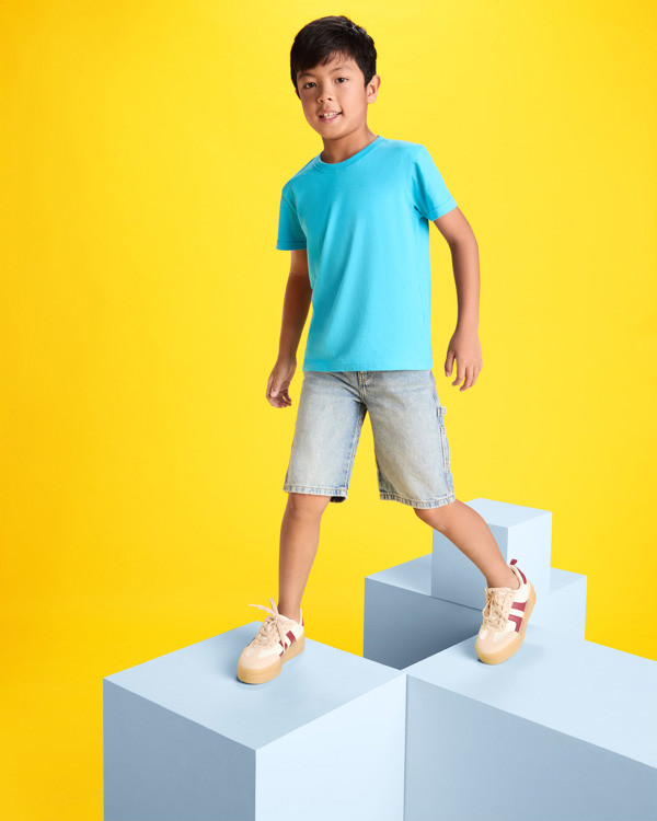 Camiseta de manga corta con costuras laterales. Algodón peinado. Cuello redondo en canalé 1x1 (4 capas). Cubrecosturas en cuello del mismo tejido.
