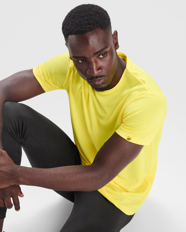 Camiseta técnica manga corta transpirable. Poliéster reciclado. Roly Control Dry. Cuello redondo y cubrecosturas del mismo tejido al tono. Etiqueta tejida eco. Certificado GRS.