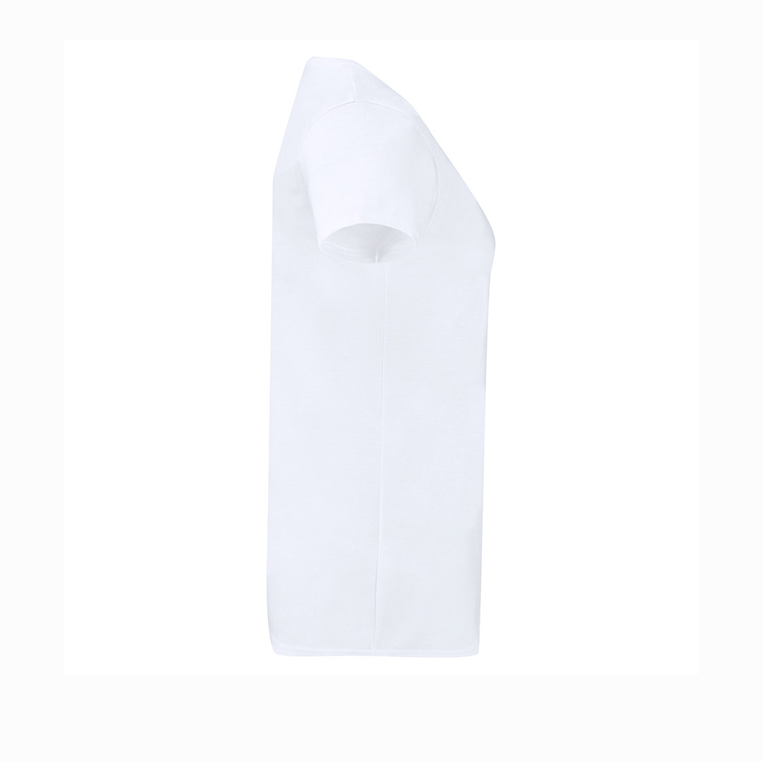 Camiseta para mujer blanca Iconic V-Neck de Fruit Of The Loom. Fabricada en material 100% algodón peinado Ring Spun de 140g/m2 hilado en anillo. De tacto suave y corte entallado, con costuras laterales diseñadas para un ajuste perfecto. Con cuello en pico estrecho de canalé 1x1 y tapeta a juego. Etiqueta fácilmente removible y disponible en tallas XS, S, M, L, XL, XXL.