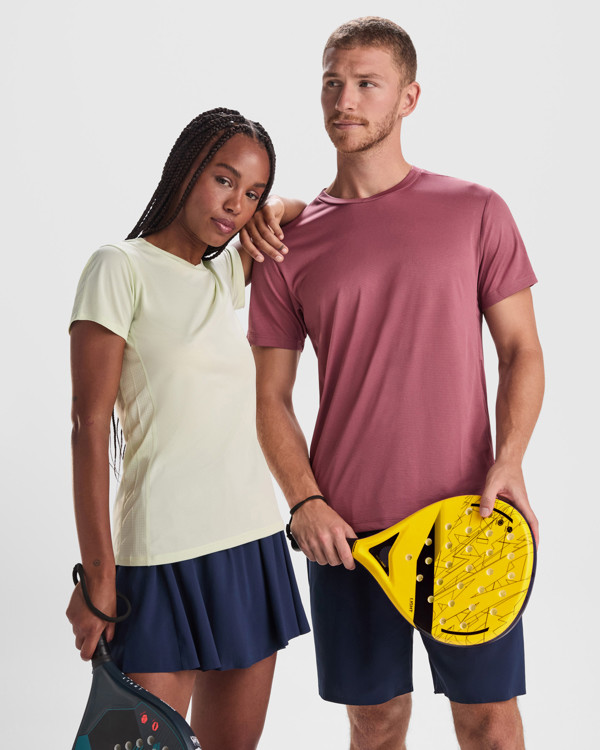 Camiseta técnica manga corta entallada transpirable. Roly Control Dry. Combinación de tejidos ligeros y elásticos en hombros, espalda y paneles laterales. Cuello cruzado redondo y cubrecosturas del mismo tejido al tono. Costuras adelantadas. Certificado GRS.