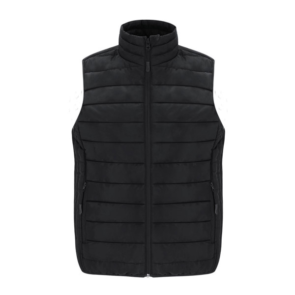 Chaleco acolchado de mujer en material extra ligero, compacto y de corte entallado. Resistente al agua y cortavientos, con suave relleno y forro interior. Cierre de cremallera invertida y tirador a juego. Cuenta con 2 bolsillos laterales con cremalleras y tirador a juego y 2 bolsillos interiores. Sisa y cintura con ribete elástico a tono. Incluye práctica funda de transporte. Resistente al Viento y al Agua. Funda Poliéster