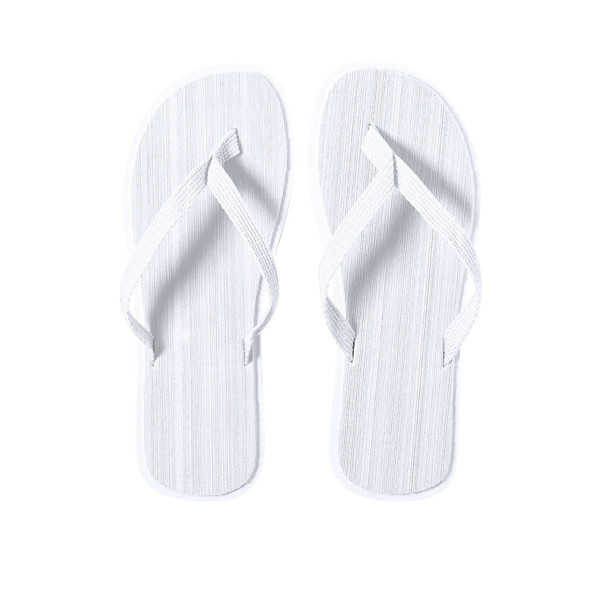 Par de chanclas con gruesa suela en resistente EVA de acabado bicolor y tira de nylon a juego en variada gama de vivos colores. Disponibles en tallas 36-38, 42-44.
