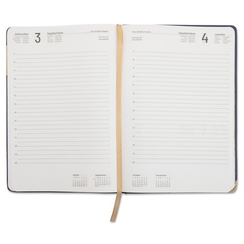 Meses y días en 9 idiomasTraducidos al Español, Portugués, Francés, Inglés, Alemán, Italiano, Euskera, Catalán y GallegoFestivos nacionales e internacionales. Contiene información adicional como teléfonos de interés, guía de hoteles y restaurantes, añadas de vinos, calendario trienio, planning semanal, etc.Incluye 352 páginas.