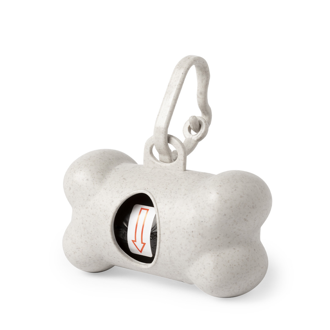 Dispensador de bolsas para mascotas en línea nature, fabricado en fibra de bambú. Con resistente cuerpo y diseño de hueso, mosquetón de transporte a juego y 15 bolsas biodegradables incluidas. 15 Bolsas Biodegradables Incluidas