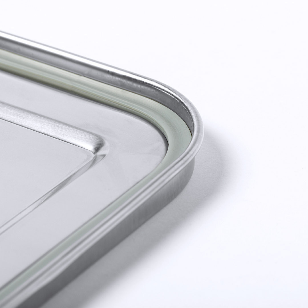 Fiambrera fabricada en acero inox y de 750 ml de capacidad. Cierre de seguridad con tapadera estanca en acero inox. Presentada en atractiva caja individual de diseño. 750 ml. Cierre Seguridad