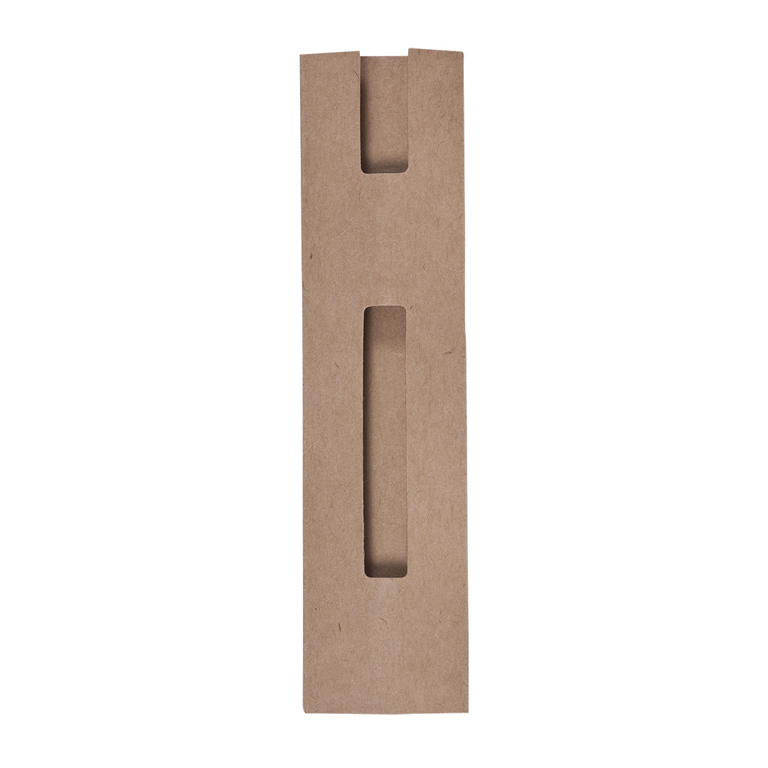 Funda para bolígrafo en resistente cartón reciclado de color natural y con diseño de ventana.