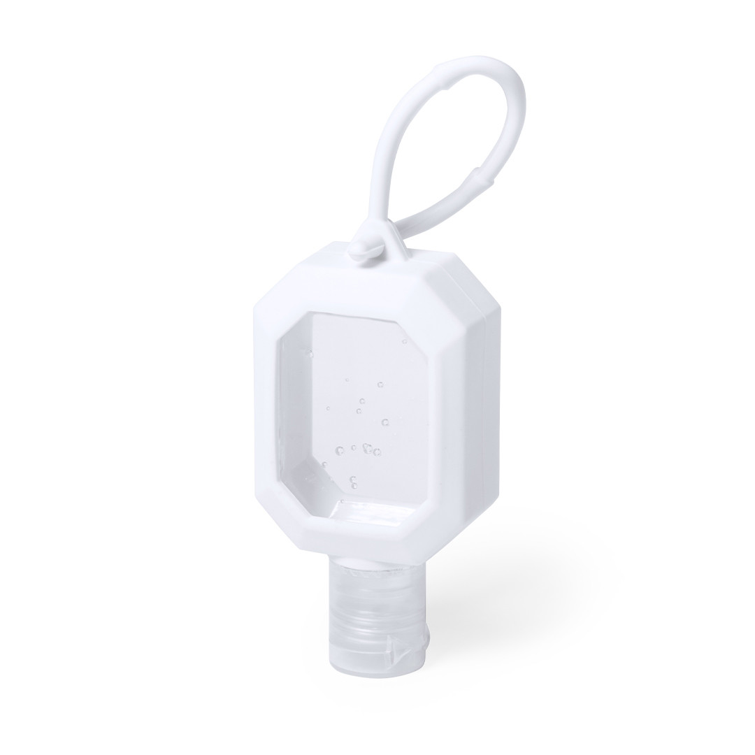 Gel hidroalcohólico para higiene y limpieza de la piel en bote rellenable de 30 ml, con extracto balsámico de Aloe Vera. Cuerpo en suave silicona de color blanco, con dosificador, tapón de seguridad y cordón en mismo material para transporte / fijación. Solución con 65% de contenido de alcohol. Disponible certificación 94/62/EC. Artículo con certificación GMP (Good Manufaturing Practices / Normas de Correcta Fabricación) que garantiza el cumplimiento de rigurosas medidas de control para la obtención de un producto seguro y de calidad. 30 ml. Solución para la limpieza de la piel