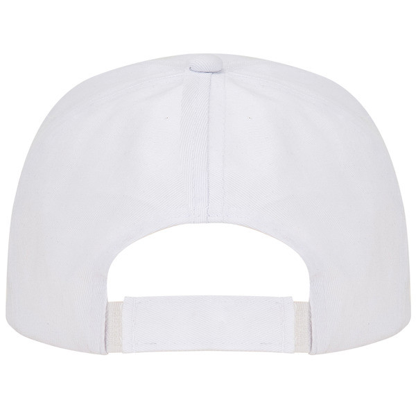 Gorra de 5 paneles 100% algodón. Con cierre ajustable de velcro y orificios de ventilación bordados a conjunto.