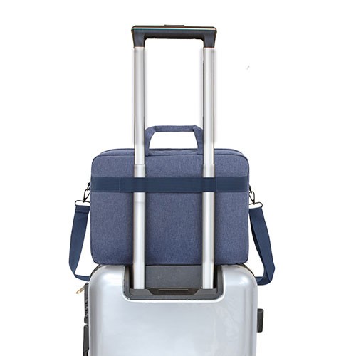 Incluye un bolsillo amplio delantero con cremallera y sujeción elástica para llevar en un trolley, además puedes llevarlo como maletín o bandolera.