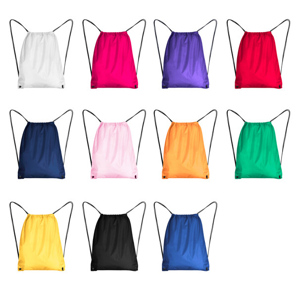 Mochila multiusos elaborada en poliéster 210D con cordones de ajuste a la espalda y ojales metálicos. Un diseño práctico para el transporte de tus enseres personales.
