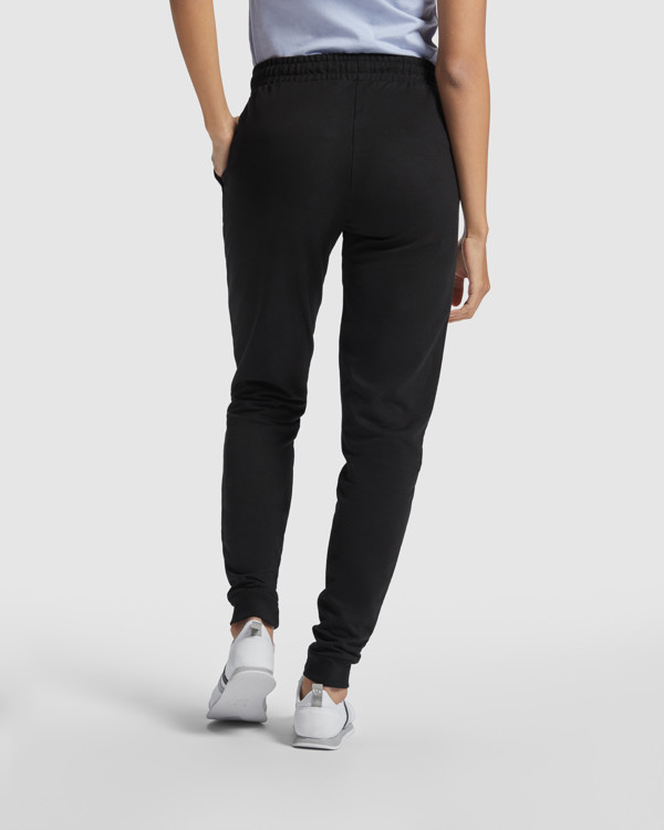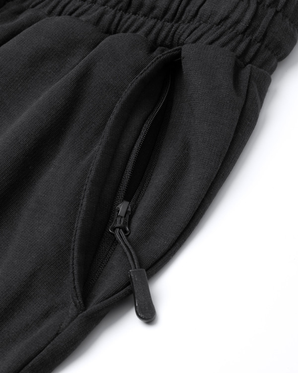 Pantalón largo recto de felpa no perchada básico. Bolsillos laterales con cremallera en talla de adulto. Cinturilla engomada con cordón ajustable y ojales metálicos. Puños en rib 1x1.