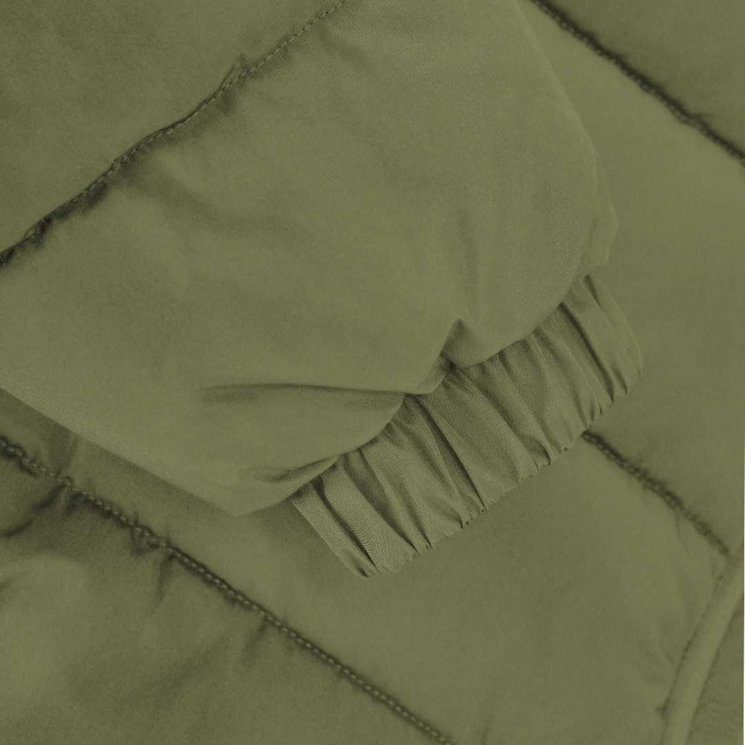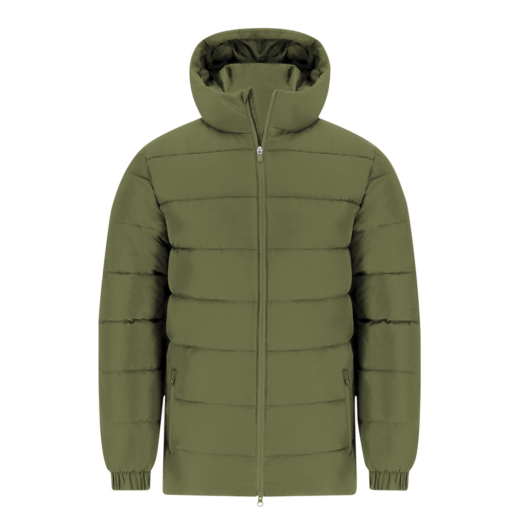 Parka infantil unisex acolchada con capucha fija y visera integrada. Incorpora cremallera frontal a tono con doble tirador y protector de barbilla. Puños elásticos para un ajuste cómodo y dos bolsillos laterales con cierre de cremallera a juego. Incluye acceso interior para marcaje en pecho izquierdo y espalda, ideal para personalización. Resistente al Viento y al Agua