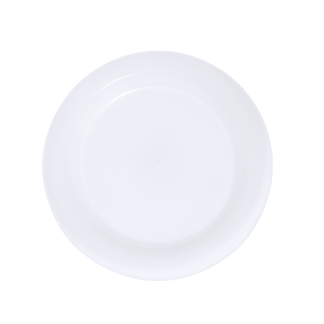 Plato plano en resistente y flexible material PP. Reutilizable y en acabado translúcido redondo.