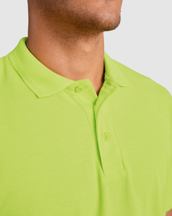 Polo de manga corta con tratamiento antipilling. Punto piqué. Cuello y mangas tejidos en 1x1 con detalle en relieve. Tapeta de 3 botones. Cubrecosturas en cuello del mismo tejido. Aperturas laterales en bajo. Bolsillo opcional. Admite lavado a 60º.