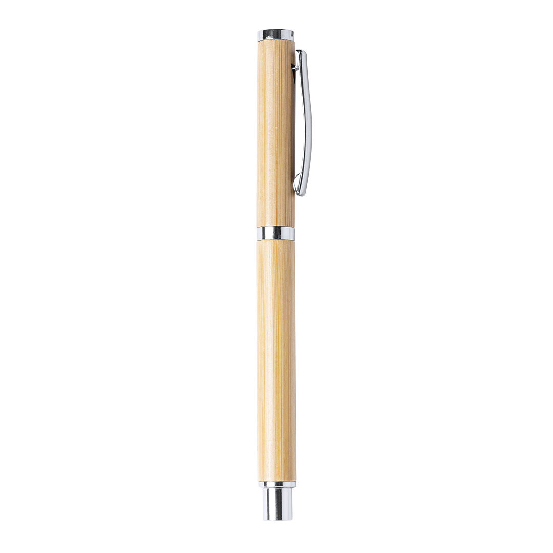 Roller de capucha de línea nature. Fabricado en bambú, con cuerpo de suave acabado y accesorios cromados. De cartucho jumbo, con tinta azul. Carga Jumbo