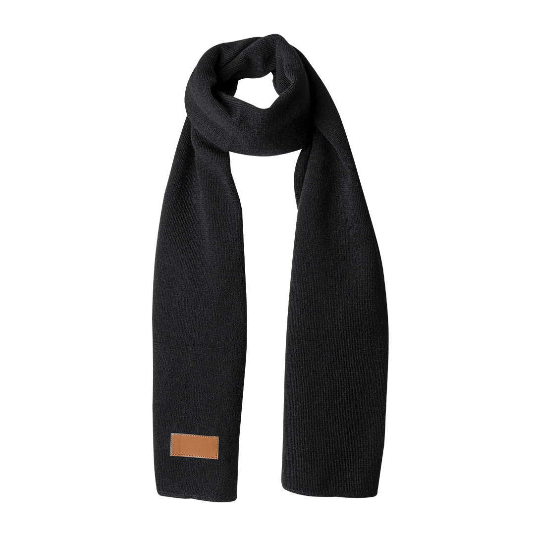 Set de 3 piezas: gorro, bufanda y guantes táctiles, ideales para ofrecer confort y funcionalidad en días fríos. Cada pieza incorpora una etiqueta cosida en PU marrón, ideal para marcaje. Presentado en elegante caja negra. Bufanda, Gorro y Guante Táctil. Talla Única. Adulto