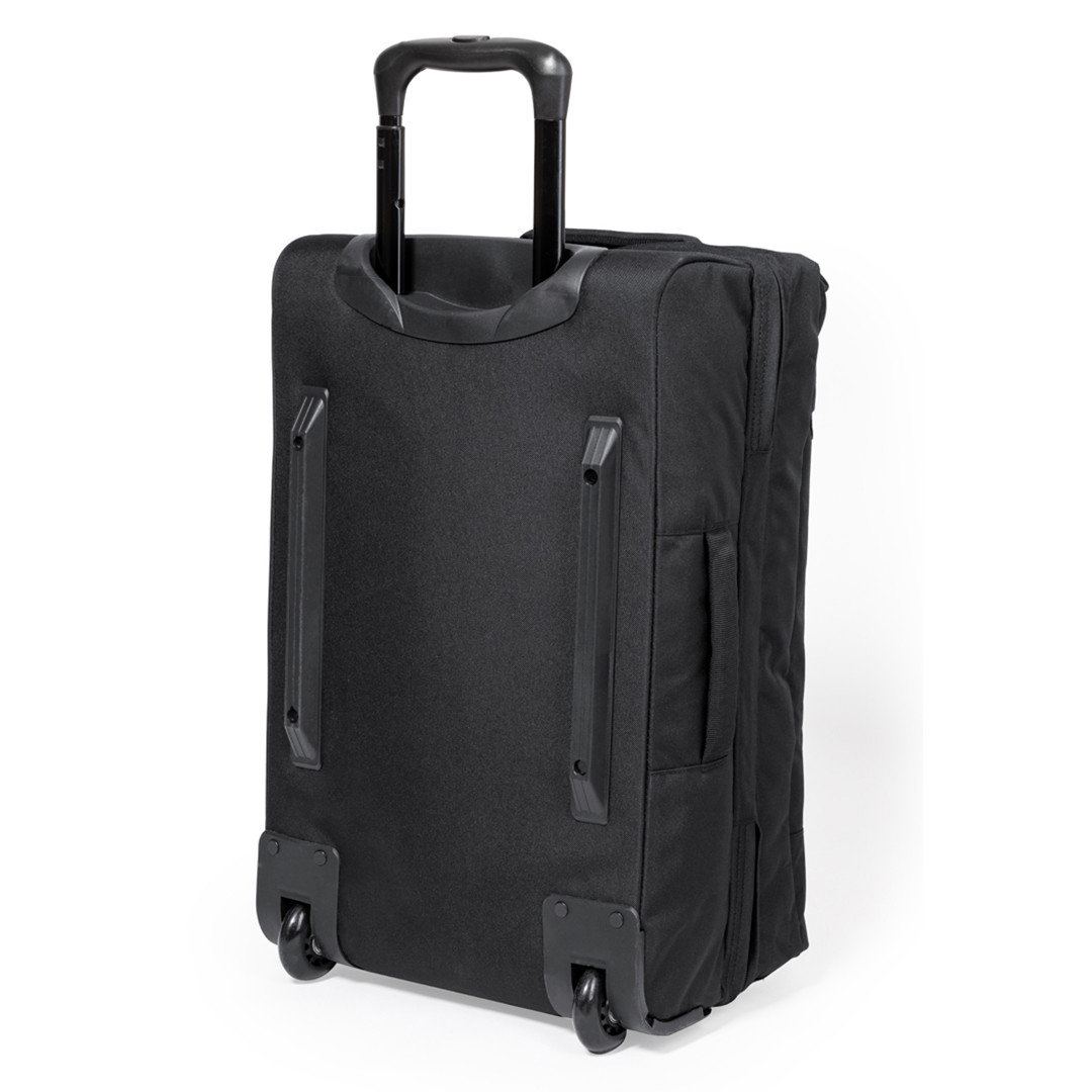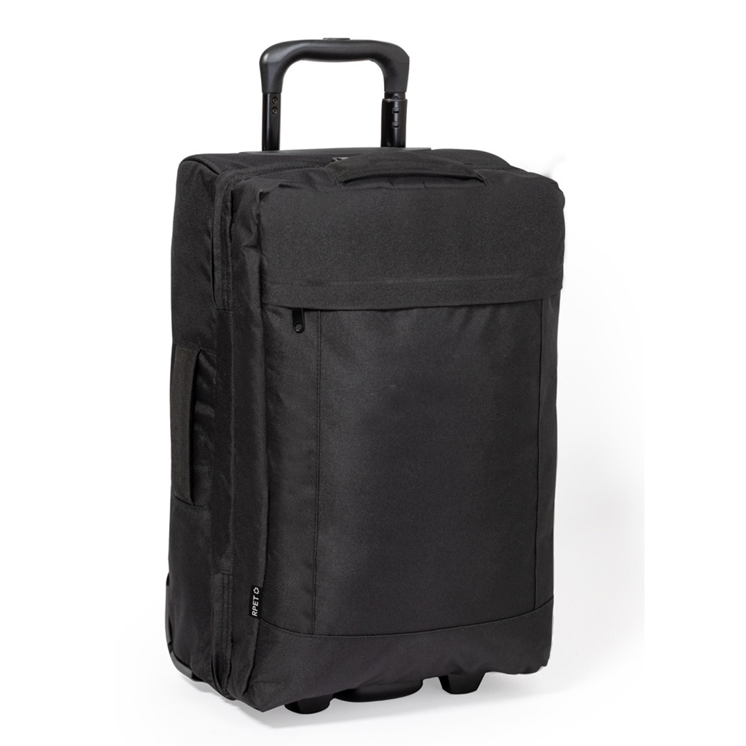 Trolley fabricado en resistente 600D RPET. Compartimento principal con cierre de cremallera de doble tirador conforme a los estándares TSA -Administración de la Seguridad en el Transporte-, que permite a las autoridades de aduanas inspeccionar el contenido del equipaje sin tener que forzar o romper el cierre, usando una llave especial a disposición de la autoridad.Interior forrado además de organizador en la zona central. Exterior con bolsillo frontal con cierre de cremallera invisible y 2 asas acolchadas de transporte. Mecanismo extensible metálico en negro, con cómoda asa de transporte y 2 ruedas. Logotipo RPET en etiqueta exterior.El material RPET se elabora a partir de plástico reciclado, para así fomentar la reutilización de residuos plásticos y ayudar a la sostenibilidad del planeta. Cierre Seguridad TSA